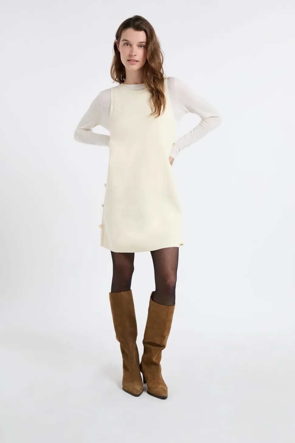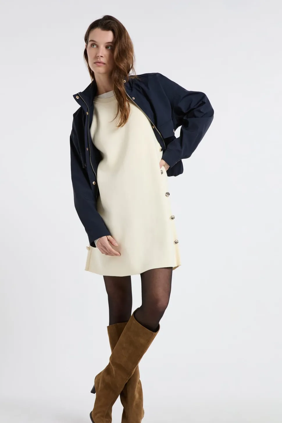 Vestido corto con botones dorados
